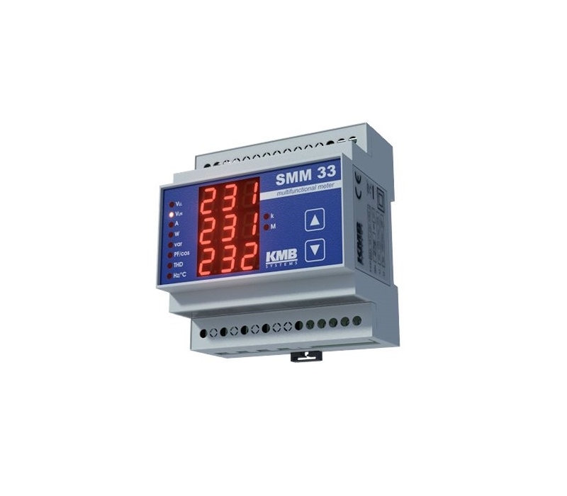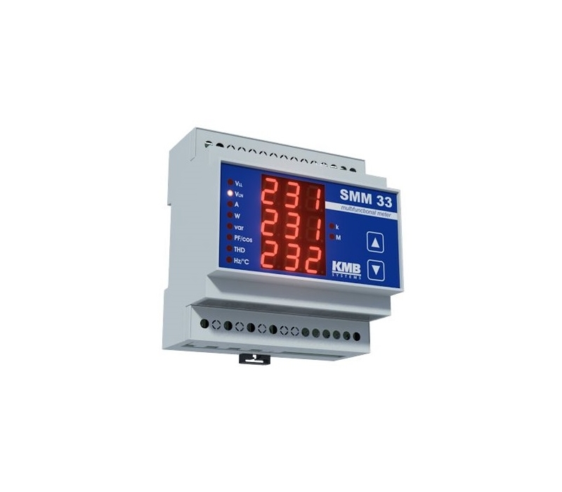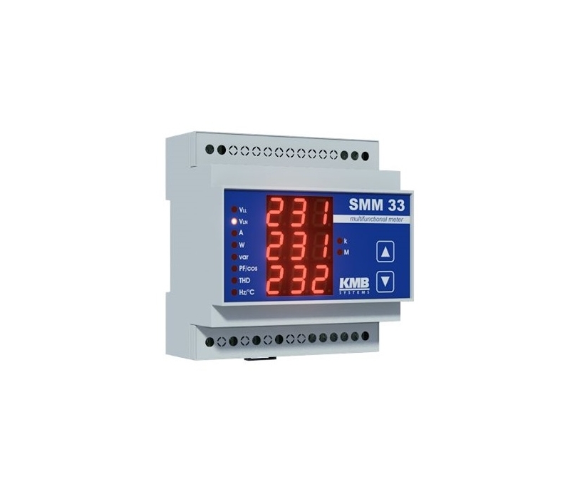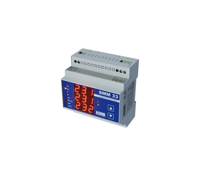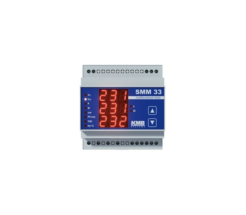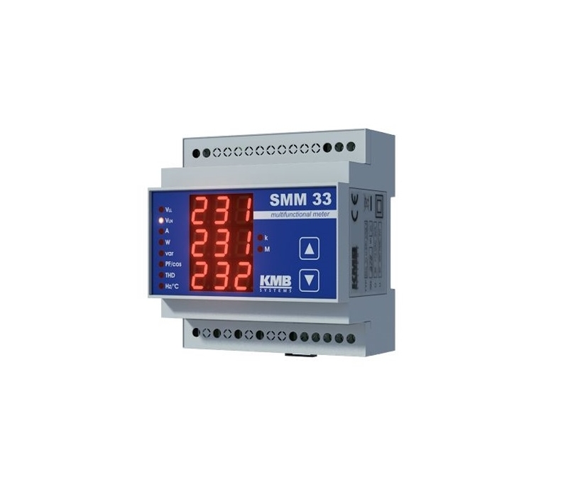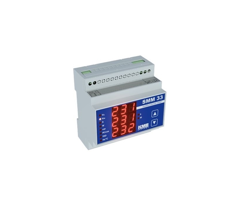 O SMM 33 é um multímetro/analisador multifuncional que oferece versatilidade e funcionalidade, tudo num tamanho compacto. O analisador de energia multifuncional SMM 33 foi especialmente desenvolvido para medição real de diferentes variaveis de fase em redes monofásicas e trifásicas, tais tensão fase-fase e fase-neutro, correntes, potência ativa, reativa e aparente, fator de potência, distorção harmonica para tensão e corrente e deteção de temperatura no interior de um painel de comando.- O analisador de energia multifuncional SMM 33 pode ser opcionalmente equipado com comunicação remota integrada via ethernet ou RS-485. Todos os dados registados podem ser visualizados, analisados e arquivados na aplicação ENVIS para PC.